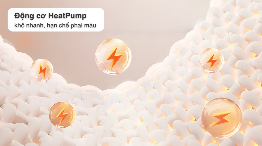 - Công nghệ sấy kép Dual HeatPump giúp quần áo khô nhanh và nhẹ nhàng, hạn chế phai màu và giữ được chất lượng quần áo tốt hơn. Công nghệ này không chỉ giữ quần áo bền đẹp mà còn tối ưu hóa lượng điện năng tiêu thụ, tiết kiệm chi phí đáng kể cho người dùng.